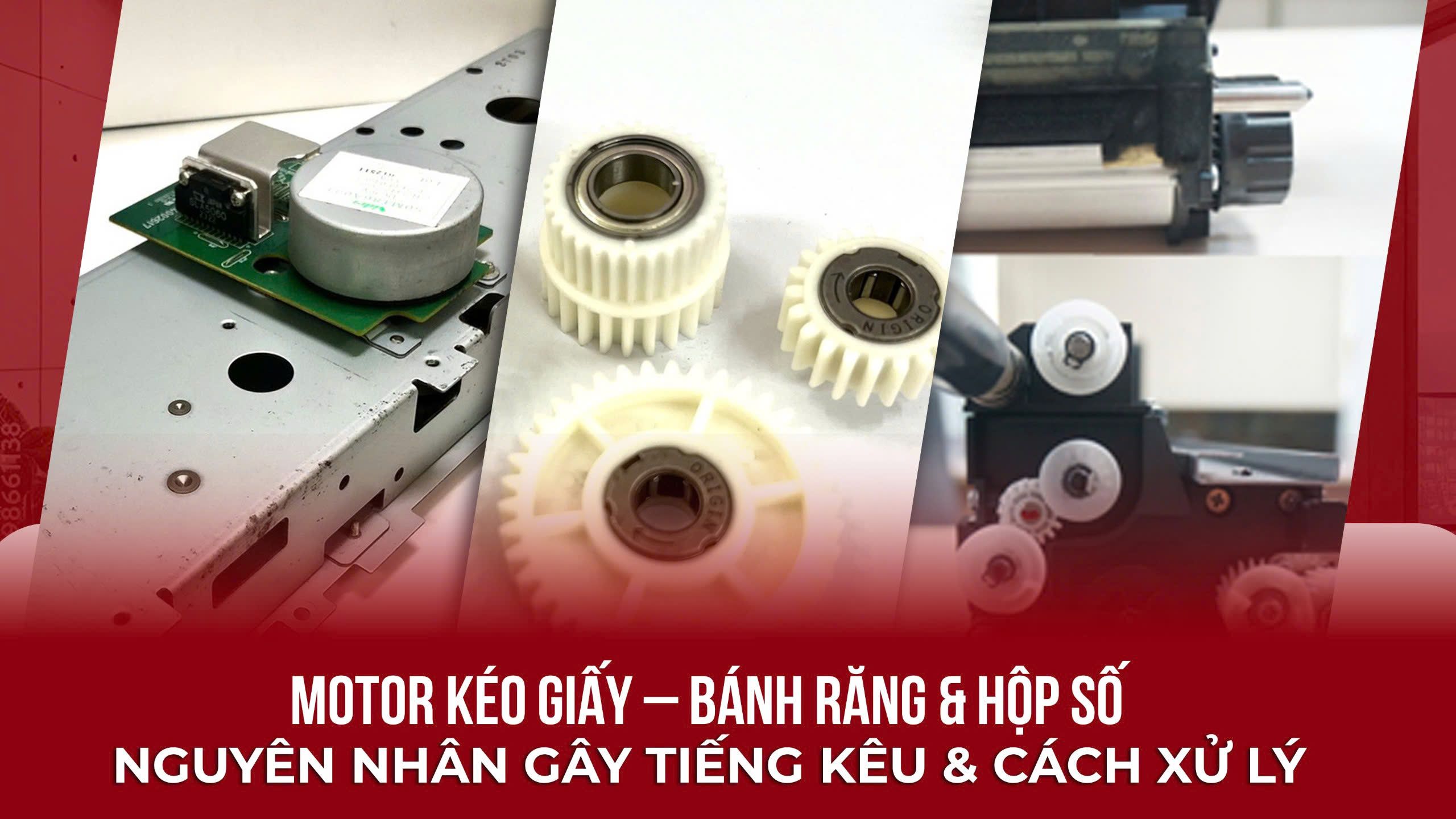Bánh răng mòn, kẹt hoặc lệch sẽ làm trục quay giật cục, dẫn đến lỗi SC, in sọc hoặc kêu lớn khi vận hành.